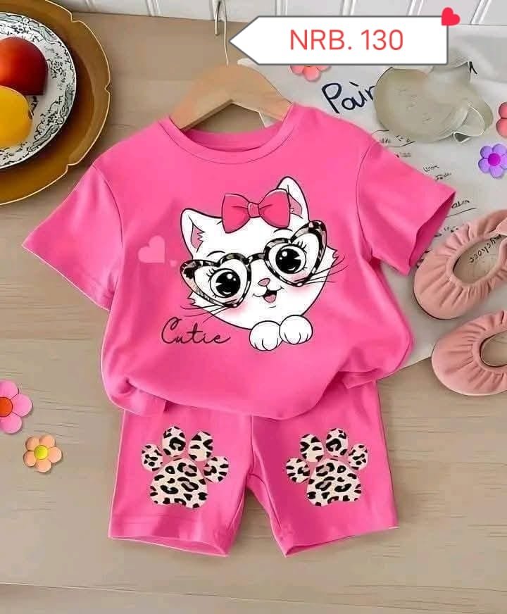 Baby Girls & Kids 2 pcs Printed T-shirt With Short pant Set (3mths-7yrs)